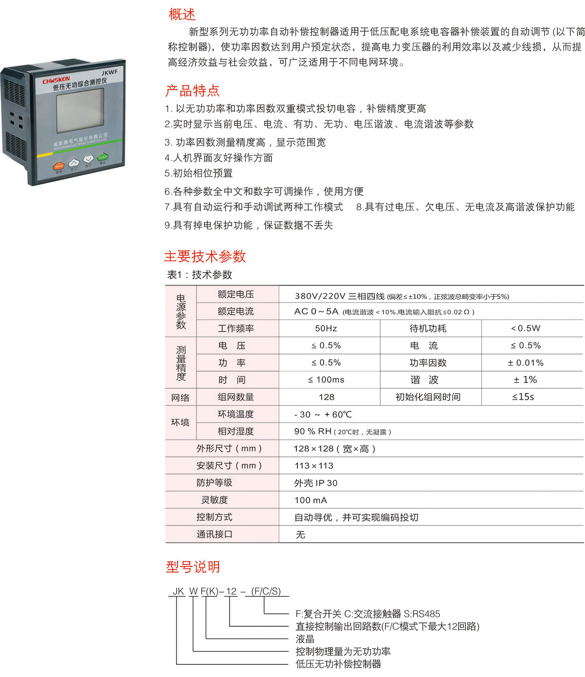 JKW系列智能无功功率自动补偿控制器