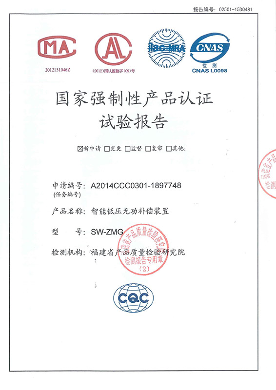 SW-ZMF智能低压无功补偿装置检验报告