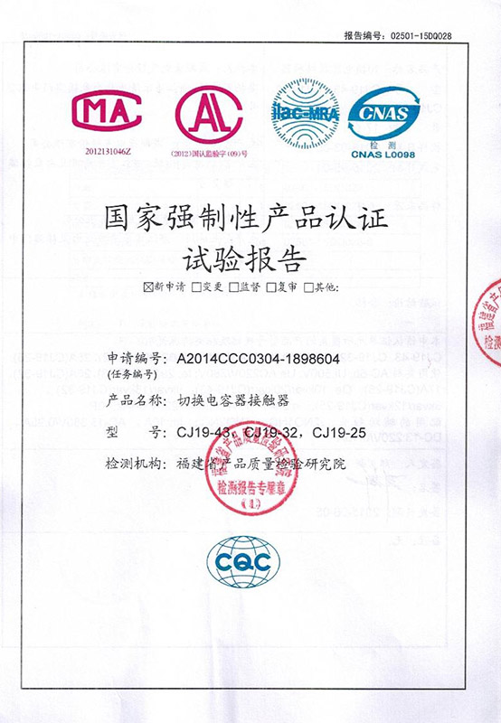 CJ19-25-32-43切换电容器接触器检测报告